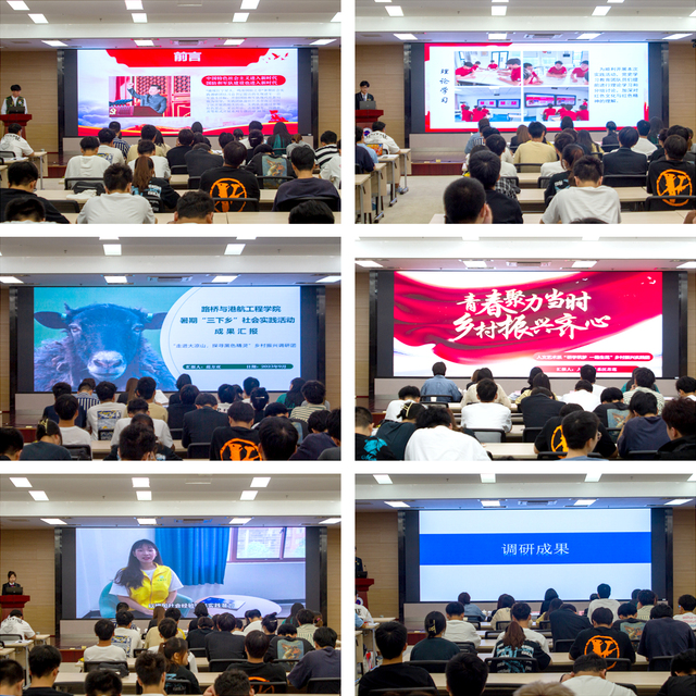 9月20日下午,學院2023年暑期社會實踐成果評審會在圖書館B203舉行。學院劉雪芬副院長出席并擔任評審,各院(系)團總支書記,實踐團指導教師、實踐團隊成員、PU報名同學共200余人觀摩了評審會。