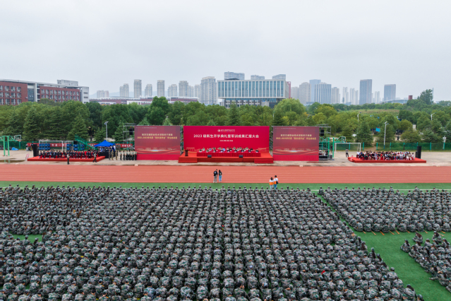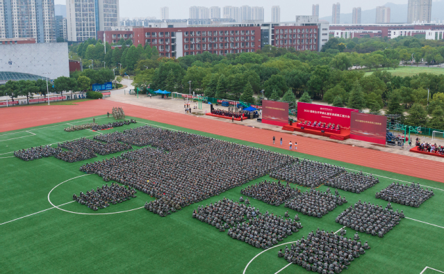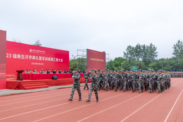 9月25日上午,2023級(jí)新生開(kāi)學(xué)典禮暨軍訓(xùn)成果匯報(bào)大會(huì)在田徑場(chǎng)隆重舉行。學(xué)院黨委書(shū)記張毅,院長(zhǎng)王道峰,黨委副書(shū)記文愛(ài)民,紀(jì)委書(shū)記張徐剛,副院長(zhǎng)劉雪芬、姜軍,承訓(xùn)部隊(duì)政治教導(dǎo)員、新生軍訓(xùn)團(tuán)團(tuán)長(zhǎng)戴鵬,組織部部長(zhǎng)康建軍,宣傳部部長(zhǎng)袁茜等領(lǐng)導(dǎo)出席大會(huì)并觀看了匯報(bào)表演。二級(jí)院系主要負(fù)責(zé)同志、2023級(jí)大學(xué)生軍訓(xùn)工作領(lǐng)導(dǎo)小組成員、軍訓(xùn)團(tuán)全體工作人員、全體教官、40余名新生家長(zhǎng)代表以及4300余名參訓(xùn)新生參加大會(huì)。會(huì)議由學(xué)院副院長(zhǎng)劉雪芬主持。