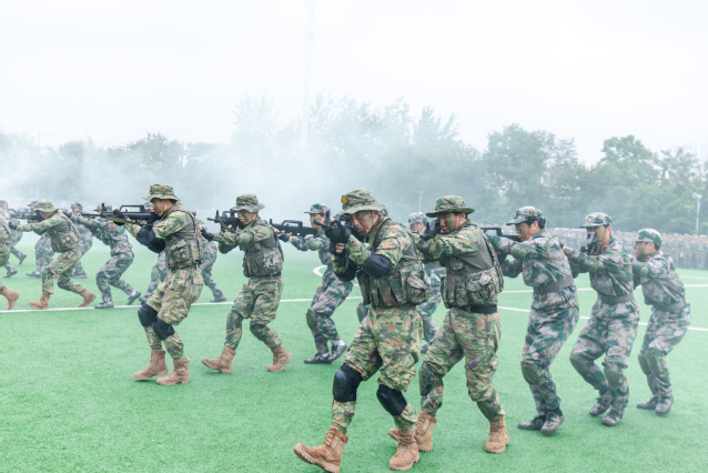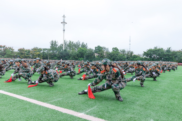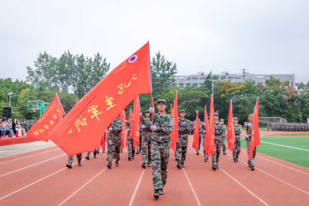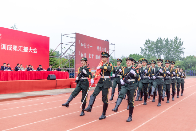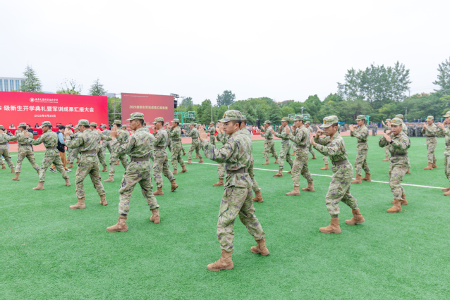 張毅書(shū)記下達(dá)“按計(jì)劃進(jìn)行”命令后,19個(gè)徒手方隊(duì)在以軍訓(xùn)團(tuán)旗為首的戰(zhàn)旗方隊(duì)引領(lǐng)下,伴著莊重威嚴(yán)的分列式進(jìn)行曲,意氣風(fēng)發(fā)、豪情滿(mǎn)懷地依次從主席臺(tái)前走過(guò),接受檢閱。嘹亮的口號(hào)響徹萬(wàn)里云霄,整齊的步伐踏出青春風(fēng)采,堅(jiān)定的眼神彰顯錚錚鐵骨,交院學(xué)子們意氣風(fēng)發(fā),斗志昂揚(yáng)。匯報(bào)表演環(huán)節(jié),組字表演、男生刺殺操、女生匕首操、教官格斗術(shù)、戰(zhàn)術(shù)綜合演練等表演方陣依次亮相,他們精神抖擻、英姿颯爽、動(dòng)作利落、氣勢(shì)飛揚(yáng),贏得了全場(chǎng)師生熱烈的掌聲和一致好評(píng)。
