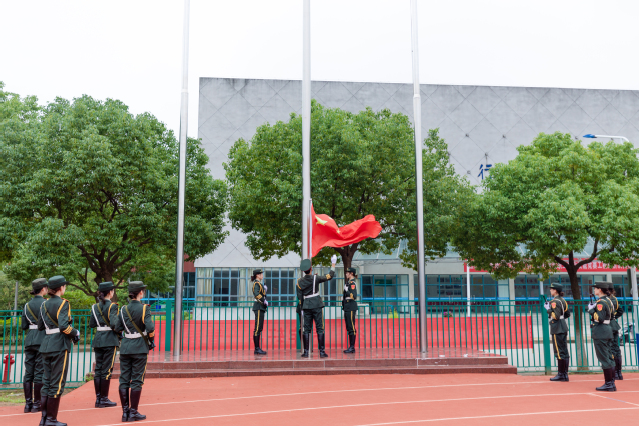 學(xué)院國(guó)旗護(hù)衛(wèi)隊(duì)舉行了莊嚴(yán)的升國(guó)旗儀式,五星紅旗伴隨著雄壯的國(guó)歌聲冉冉升起,2023級(jí)新生軍訓(xùn)成果匯報(bào)表演正式拉開(kāi)帷幕。