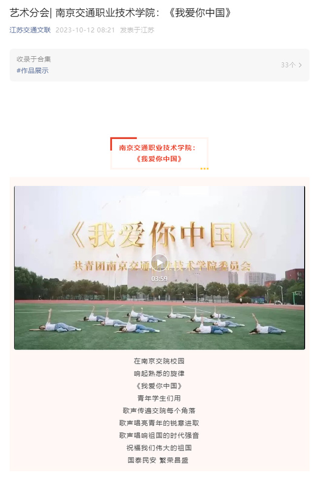 【江蘇交通文聯(lián)】南京交通職業(yè)技術(shù)學(xué)院:《我愛你中國》