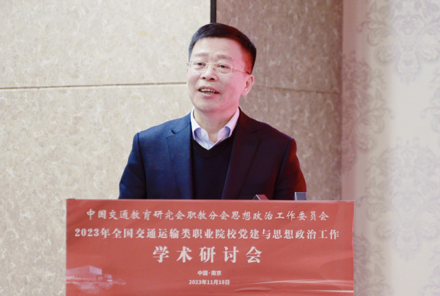 金凌副廳長代表江蘇省交通運輸廳對本次研討會的成功召開表示祝賀,對中國交通教育研究會堅強領導和職教分會的指導幫助、對兄弟省份交通運輸類職業(yè)院校的關心支持表示感謝。他希望全國交通運輸類職業(yè)院校攜手同心、和衷共濟、搶抓機遇,聚焦目標導向、問題導向、效果導向,切實加強黨對教育工作的全面領導,始終堅持社會主義辦學方向,落實立德樹人根本任務,構建黨建引領發(fā)展新格局、探索思政育人新路徑,提高黨建和思政工作質(zhì)量與水平,共同推動交通職業(yè)教育高質(zhì)量發(fā)展。