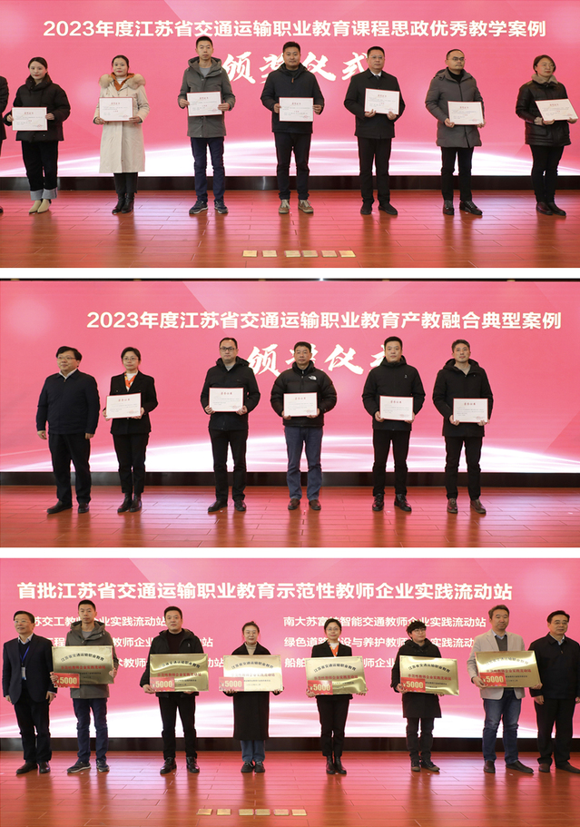 12月16日,江蘇省交通運輸職業(yè)教育行業(yè)指導委員會第四次全體委員大會暨江蘇交通運輸職業(yè)教育集團2023年年會以“線下活動+線上云直播”方式在江蘇省交通技師學院舉行。江蘇省交通運輸行指委主任委員、省交通運輸廳黨組成員、副廳長金凌,省行指委辦公室主任、南京工業(yè)職業(yè)技術(shù)大學黨委副書記馬成榮,交通運輸職教集團副理事長、江蘇聯(lián)合職業(yè)技術(shù)學院黨委書記劉克勇,交通運輸行指委副主任委員、省交通運輸廳政治處處長范健,省教育廳職教處副處長李永樂等出席線下會議。江蘇省交通運輸行指委全體委員、江蘇交通運輸職教集團全體理事、知名專家學者、特邀嘉賓及獲獎代表參加會議。南京交通職業(yè)技術(shù)學院黨委書記、省交通運輸行指委副主任委員張毅,江蘇省交通技師學院院長、省交通運輸行指委副主任委員李虎主持會議。