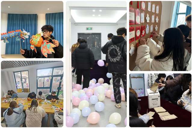 電子信息工程學院在“薪火驛站”一站式學生社區(qū)舉辦了一系列迎新年暨心理健康游園會活動。通過心愿便利貼、心理解壓趣味游戲表達對新年的祝福,釋放壓力,獲得身心放松。學院還邀請關(guān)工委趙家華老師和學生共同完成“慶祝建校七十周年的剪紙”剪紙作品。