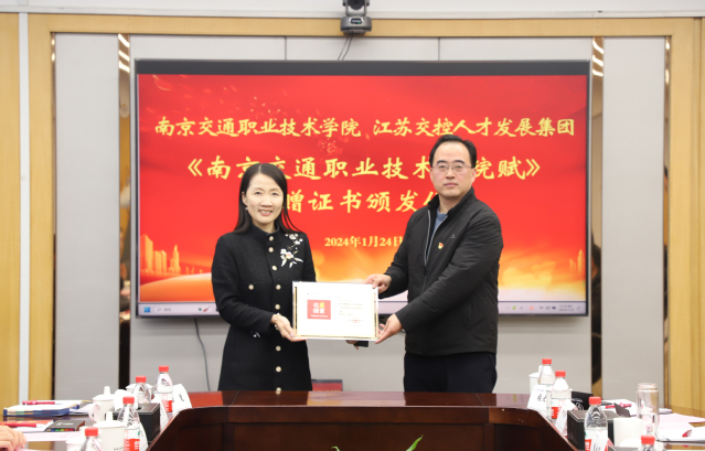 會(huì)上,謝劍康副院長(zhǎng)首先簡(jiǎn)要介紹了學(xué)院近些年的發(fā)展?fàn)顩r,并表達(dá)了學(xué)院對(duì)校友的問(wèn)候。并提出要從黨建共建、社會(huì)培訓(xùn)、業(yè)務(wù)工作等方面與加強(qiáng)與江蘇交控人才集團(tuán)的合作,從而實(shí)現(xiàn)校企合作共贏。謝劍康副院長(zhǎng)還為優(yōu)秀校友代表施玲頒發(fā)了《南京交通職業(yè)技術(shù)學(xué)院賦》收藏證書。