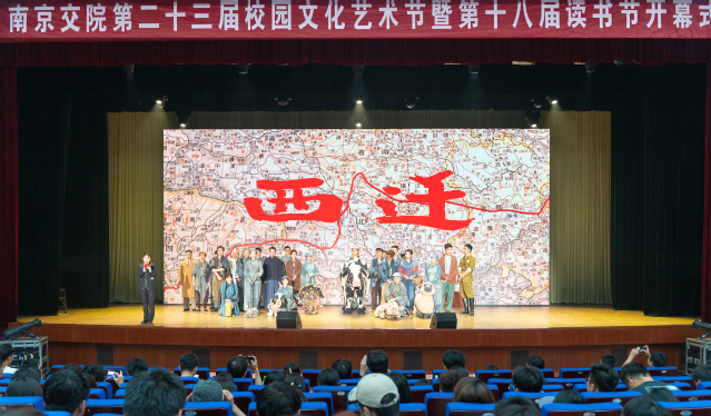 開幕式邀請江蘇省演藝集團話劇團帶來話劇《西遷》專場演出,該劇別開生面的人偶混搭演出、新穎的舞臺呈現(xiàn),讓這部既有時代質感、又有當代審美價值的作品,直擊師生的心靈,展現(xiàn)抗戰(zhàn)時期中華兒女面對強敵、面對入侵,不屈不折的高貴精神品質。演出結束后,同學們紛紛表示,在今后的學習和生活中,要學習“西遷”精神,傳承艱苦奮斗的優(yōu)良作風,肩負起新時代的使命和擔當。