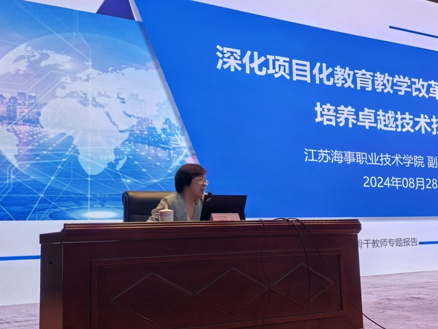 江蘇海事職業(yè)技術(shù)學(xué)院副院長陳曉琴教授以《深化項目化教育教學(xué)改革,培養(yǎng)卓越技術(shù)技能人才》為題,結(jié)合學(xué)校項目化教學(xué)實踐的案例,詳細闡述了項目化教育教學(xué)改革的實施策略和方法,并分享了航海專業(yè)“四方聯(lián)動賦能四船交替實踐”的卓越海員培養(yǎng)模式。