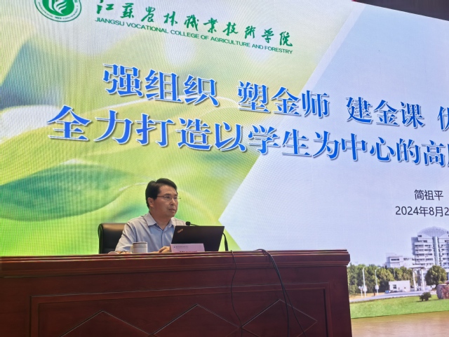 江蘇農(nóng)林職業(yè)技術(shù)學(xué)院黨委書記簡祖平教授在《強組織、塑金師、建金課、優(yōu)機制,全力打造以學(xué)生為中心的高質(zhì)量課堂》的專題報告中,從“現(xiàn)狀與問題、探索與實踐、思考與啟示”等三個方面,講述了學(xué)校打造高質(zhì)量課堂實踐之路和取得的豐碩成果,深刻分析了課堂教學(xué)高質(zhì)量發(fā)展方法與路徑。