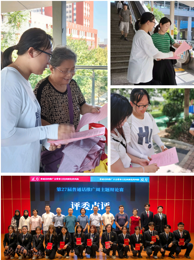 活動多樣、多“員”融入,展現(xiàn)漢語言魅力。推普周期間,相繼開展了“廣場推廣”“主題辯論”“有獎競讀”“詩歌朗誦”等推普活動?;顒硬粌H提高了中國學(xué)生使用國家通用語言文字的意識和能力,還吸引了在校留學(xué)生的積極參與。學(xué)生們紛紛表示,參加推普周活動,加強了對中國語言文字規(guī)范化工作重要性的認(rèn)識,提高了說普通話、寫規(guī)范字的能力,也增進了中外語言文化交流和情感溝通。