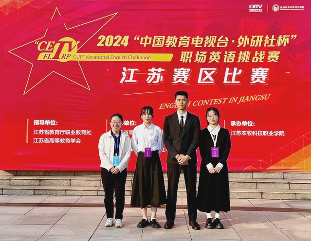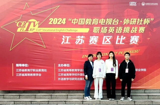 11月3日,2024年“中國教育電視臺·外研社杯”職場英語挑戰(zhàn)賽江蘇賽區(qū)比賽在泰州落下帷幕。來自全省71所高職院校的400余名選手激烈角逐。在演講比賽中,人文藝術系室內(nèi)藝術設計專業(yè)的王岳同學(指導教師:孔婧)獲得二等獎;軌道交通學院城市軌道車輛應用技術專業(yè)的曹文慧同學(指導教師:黃丹卉)、城市軌道交通通信信號技術專業(yè)的舒佳藝同學(指導教師:姜龍)分別獲得三等獎。在寫作大賽中,路橋與港航工程學院道路與橋梁工程技術專業(yè)的胡虹彥同學(指導教師:滕兆瑋)、汽車工程學院新能源汽車檢測與維修專業(yè)的鐘明軒同學(指導教師:袁夕娣)分別獲得二等獎;建筑工程學院建筑工程造價專業(yè)的于詩憶同學(指導教師:王芳)獲得三等獎。