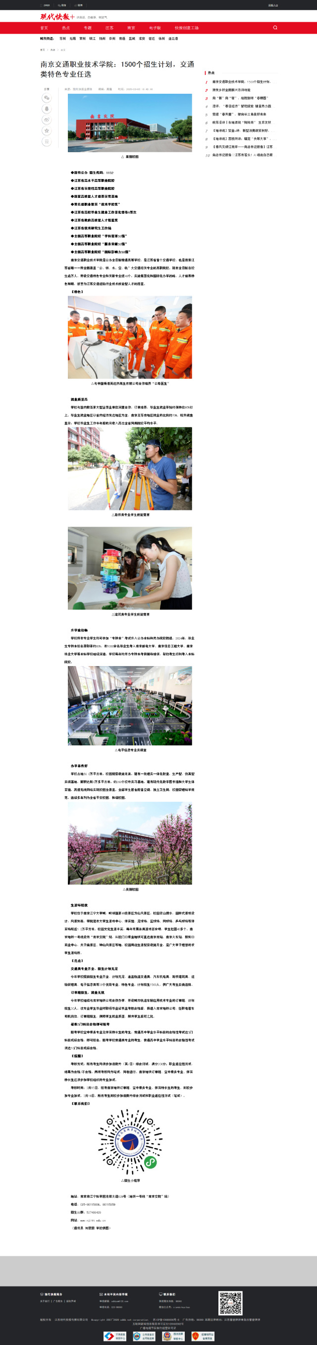 【現(xiàn)代快報+】南京交通職業(yè)技術(shù)學院:1500個招生計劃,交通類特色專業(yè)任選