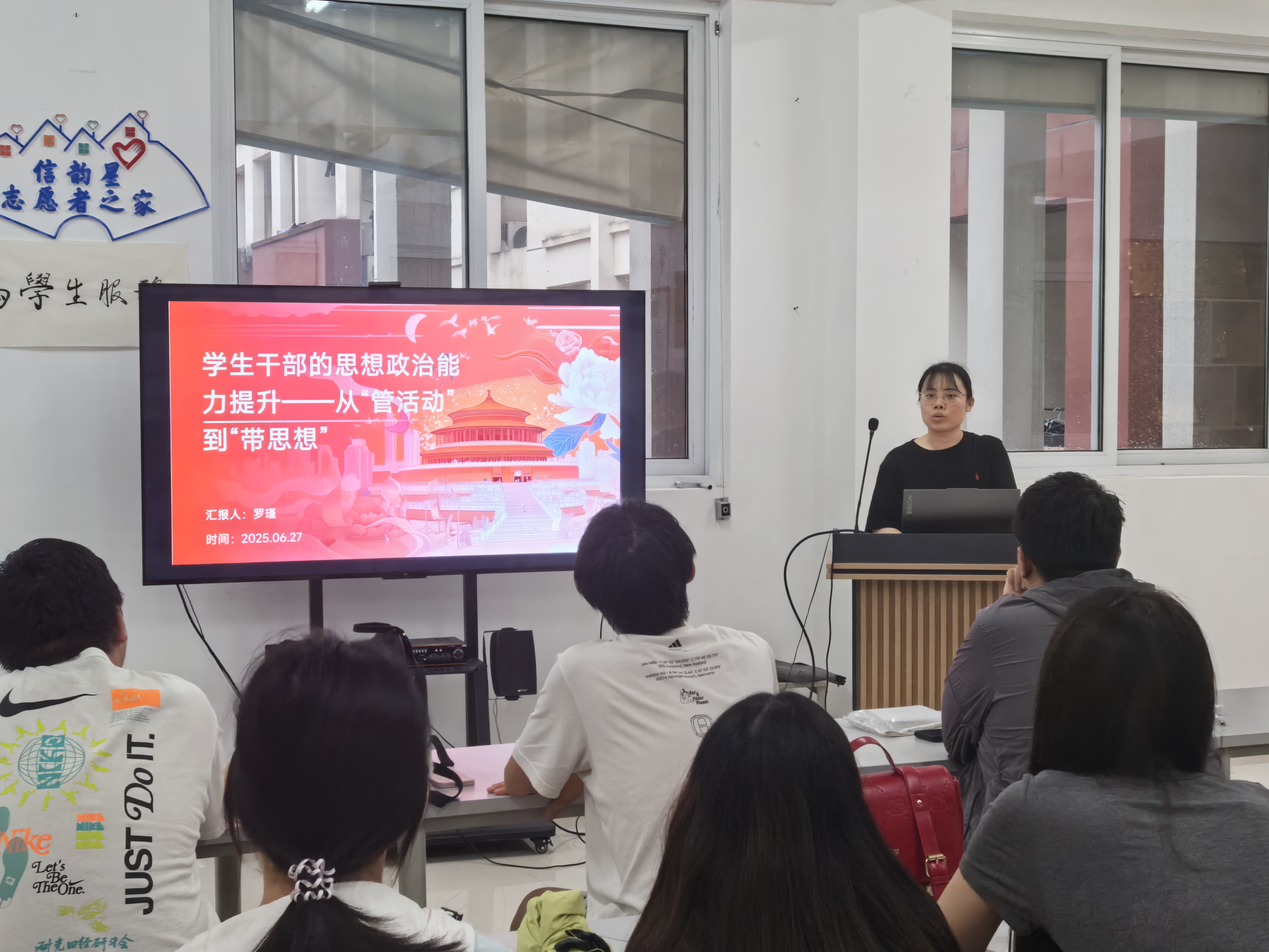 為進一步深化學生干部隊伍建設,推動學生骨干角色從傳統(tǒng)活動組織者向思想引領者轉(zhuǎn)變,電子信息工程學院于6月27日在J棟一站式社區(qū)成功舉辦“學生干部思想政治能力提升”專題講座。本次研討會聚焦“從‘管活動’到‘帶思想’”的核心議題,旨在探索新時代學生干部發(fā)揮思想引領作用的新路徑、新方法。