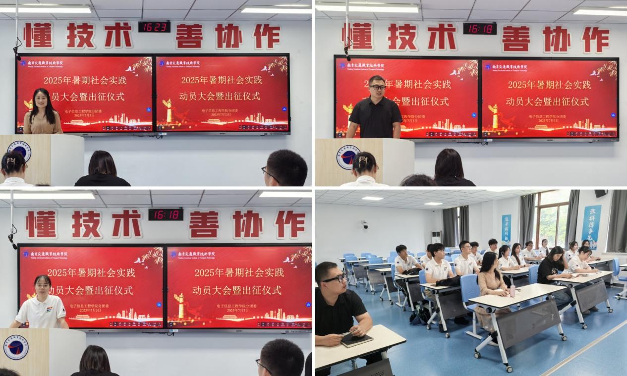 7月3日下午,電子信息工程學(xué)院在宏博樓205舉行2025年暑期社會(huì)實(shí)踐動(dòng)員大會(huì)暨出征儀式,電子信息工程學(xué)院黨總支副書(shū)記吳蓉蓉、學(xué)工辦主任吳穎、分團(tuán)委書(shū)記張明元、23級(jí)輔導(dǎo)員以及參與實(shí)踐活動(dòng)的全體同學(xué)參加了本次出征儀式,會(huì)議由葛漢卿老師主持。