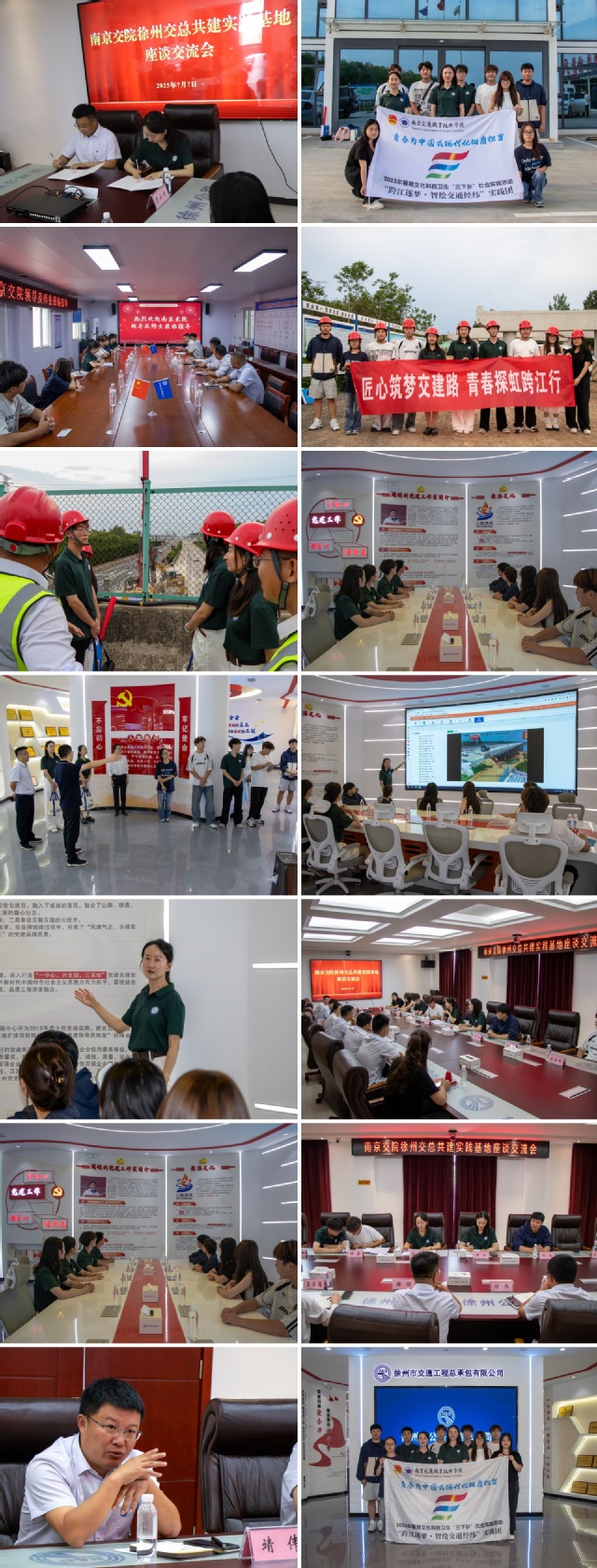 7月7日,南京交通職業(yè)技術(shù)學(xué)院路橋與港航工程學(xué)院“跨江逐夢(mèng) 智繪交通經(jīng)緯”暑期社會(huì)實(shí)踐團(tuán)赴徐州市交通工程總公司開展暑期社會(huì)實(shí)踐共建活動(dòng)。雙方通過(guò)黨建交流、項(xiàng)目考察、簽約座談等形式,就共建實(shí)踐基地達(dá)成多項(xiàng)合作共識(shí)。
