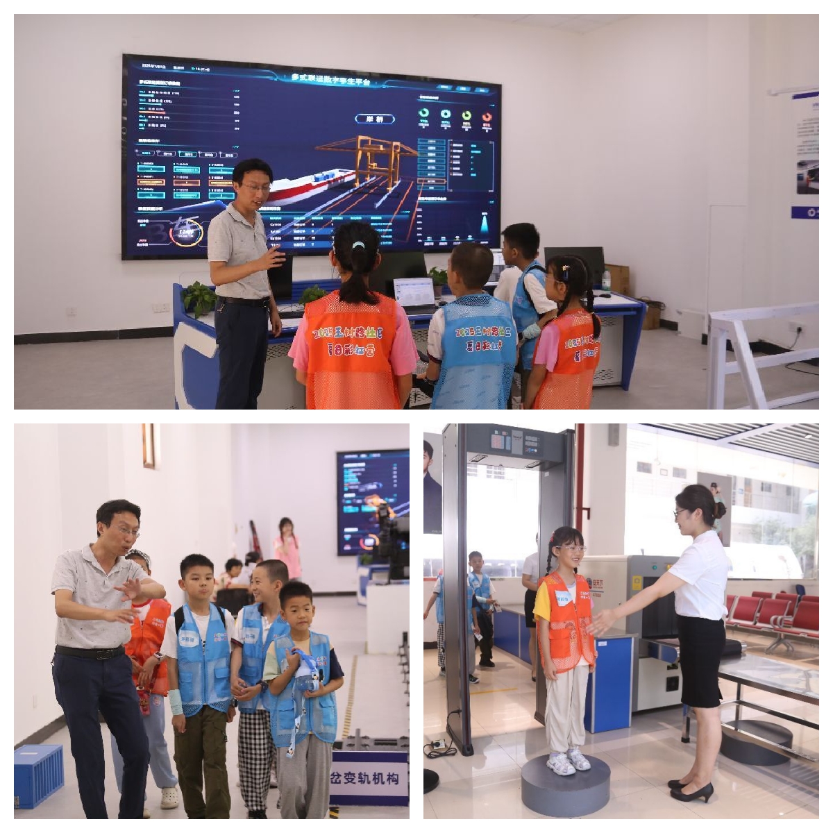 作為學(xué)院2024年重點(diǎn)建設(shè)的實(shí)訓(xùn)平臺(tái),國(guó)際多式聯(lián)運(yùn)虛擬仿真實(shí)訓(xùn)室以數(shù)字孿生技術(shù)驚艷全場(chǎng)。孩子們?cè)诂F(xiàn)場(chǎng)展示中體驗(yàn)訂艙、報(bào)關(guān)、多式聯(lián)運(yùn)路徑規(guī)劃等操作。在以南京地鐵一號(hào)線為標(biāo)準(zhǔn)的城軌實(shí)訓(xùn)室中,孩子們坐進(jìn)1:1還原的地鐵駕駛艙。在志愿者的幫助下,他們推動(dòng)操縱桿、觀察儀表盤,體驗(yàn)列車啟動(dòng)、??康哪M操作。走進(jìn)劃分三大實(shí)訓(xùn)區(qū)的空乘實(shí)訓(xùn)中心,孩子們瞬間被真實(shí)還原的客艙環(huán)境所吸引。他們學(xué)習(xí)為“乘客”辦理值機(jī)、托運(yùn)行李,模擬客艙廣播、緊急疏散等場(chǎng)景。