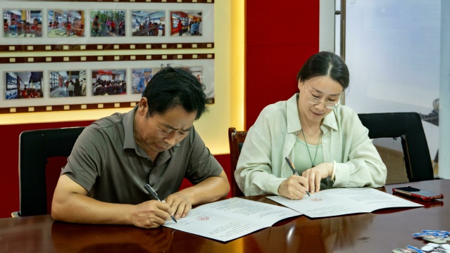 在朱家崗村黨群服務中心,雙方黨支部舉行了隆重的共建簽約儀式。校地雙方圍繞“資源共享、優(yōu)勢互補、共同發(fā)展”的原則將在黨建共建、文化惠民、藝術下鄉(xiāng)、志愿服務等方面開展深度合作。藝術設計學院將充分發(fā)揮專業(yè)優(yōu)勢,定期組織師生赴村開展藝術下鄉(xiāng)活動,助力鄉(xiāng)村文化振興;朱家崗村將作為學院實踐教育基地,為師生提供紅色文化教育、鄉(xiāng)村建設調研等實踐平臺。