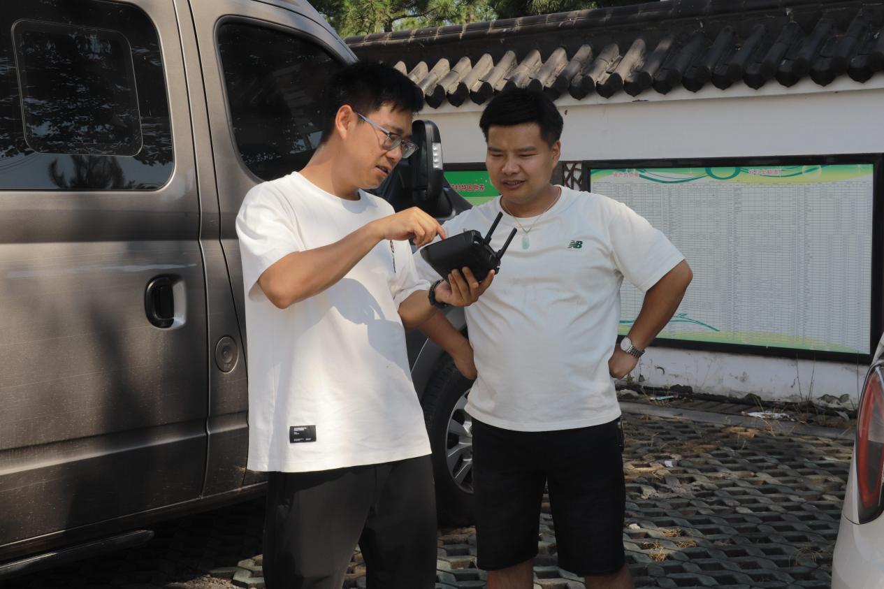 實踐團結(jié)合前期調(diào)研掌握的村莊地形地貌與產(chǎn)業(yè)分布特點,制定了科學(xué)詳盡的飛行方案。團隊成員頂烈日、戰(zhàn)高溫,在測繪前輩的指導(dǎo)下操作大疆御3E無人機升空作業(yè)。高效采集覆蓋村莊建成區(qū)、主要苗木種植區(qū)、道路水系及公共空間的高清正射影像與傾斜影像數(shù)據(jù)。通過嚴謹?shù)暮骄€規(guī)劃與規(guī)范的飛行操作,所獲影像資料的清晰度、完整性及高精度得到充分保障,為構(gòu)建村莊數(shù)字底圖奠定堅實基礎(chǔ)。