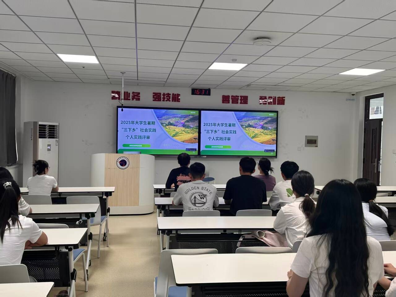 分享會(huì)上,17名學(xué)生代表登臺(tái),結(jié)合PPT生動(dòng)講述了自己的暑期實(shí)踐經(jīng)歷。從分享中,能真切體會(huì)到“被需要是一種幸福”。有的同學(xué)回顧了自己在社區(qū)報(bào)到、開(kāi)展夏令營(yíng)的精彩時(shí)光;有的同學(xué)分享了自己走訪村委會(huì)并介紹學(xué)校資助政策的經(jīng)歷;有的同學(xué)重溫了自己做兼職時(shí)被顧客贊賞的驕傲?xí)r刻。大學(xué)生暑期社會(huì)實(shí)踐意義深遠(yuǎn),它讓學(xué)生在學(xué)業(yè)之外,搭建起自身與社會(huì)的橋梁,既能鍛煉實(shí)踐能力、涵養(yǎng)家國(guó)情懷,也能深入了解美麗鄉(xiāng)村建設(shè),實(shí)現(xiàn)個(gè)人成長(zhǎng)與社會(huì)認(rèn)知的雙重提升。