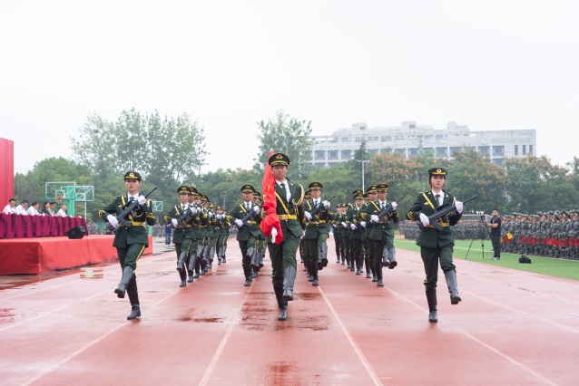 國(guó)旗護(hù)衛(wèi)隊(duì)步伐鏗鏘、目光堅(jiān)毅,護(hù)衛(wèi)國(guó)旗正步走向升旗臺(tái)。在莊嚴(yán)的國(guó)歌聲中五星紅旗冉冉升起,2025級(jí)新生軍訓(xùn)成果匯報(bào)暨總結(jié)表彰大會(huì)正式拉開序幕。