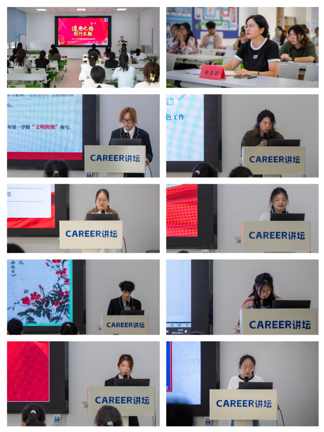 答辯會上,候選個人與班集體代表圍繞學業(yè)成績、專業(yè)創(chuàng)新、社會實踐與班級建設(shè)等方面作了陳述和展示,用“青春答卷”精彩詮釋了“身邊的榜樣”、集體的力量,展現(xiàn)了藝術(shù)設(shè)計學院學子踔厲奮發(fā)的時代風采。