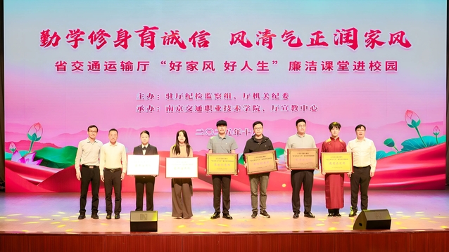 為進(jìn)一步鞏固深入貫徹中央八項(xiàng)規(guī)定精神學(xué)習(xí)教育成果,傳承廉潔家風(fēng)文化,推進(jìn)廉潔教育與校園文化相融合,10月15日,我校承辦省交通運(yùn)輸廳“好家風(fēng) 好人生”廉潔課堂進(jìn)校園活動(dòng)。廳一級(jí)巡視員凌耀初,駐廳紀(jì)檢監(jiān)察組組長(zhǎng)、廳黨組成員、二級(jí)高級(jí)監(jiān)察官陳海鷹、學(xué)院院長(zhǎng)王道峰等出席活動(dòng)。省紀(jì)委監(jiān)委有關(guān)部門(mén)領(lǐng)導(dǎo)、省交通運(yùn)輸廳機(jī)關(guān)代表、江蘇交通文聯(lián)書(shū)畫(huà)家、廳屬單位代表及全校師生代表300余人參加了本次活動(dòng)。