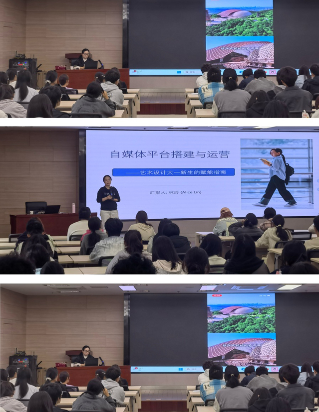 藝數(shù)相融,洞見未來,擁抱產(chǎn)業(yè)數(shù)字化新業(yè)態(tài)。面對數(shù)字化時代,本次認(rèn)知教育特別設(shè)置了“設(shè)計資源應(yīng)用與挖掘”以及“自媒體平臺搭建與應(yīng)用”等實用模塊。10月17日,同學(xué)們學(xué)習(xí)了如何高效利用各類設(shè)計資源,并初步掌握了通過自媒體展示個人作品、構(gòu)建個人品牌的能力?!八囆g(shù)設(shè)計與AI”主題分享深入探討了人工智能技術(shù)如何為設(shè)計創(chuàng)作帶來革命性變革,激發(fā)了大家對科技與藝術(shù)融合的無限想象。