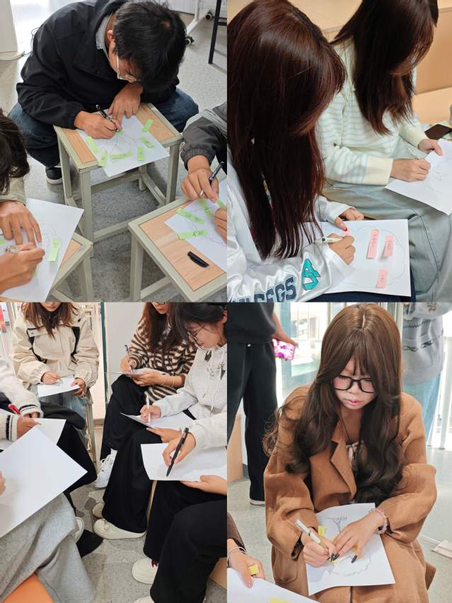針對新生常見的宿舍關系問題,活動特別設計宿舍心藍圖情景模擬。心理委員們用便利貼標注床位,分享作息差異引發(fā)矛盾等困擾,并通過小組討論制定23:00后戴耳機、值日表輪換制等解決方案。