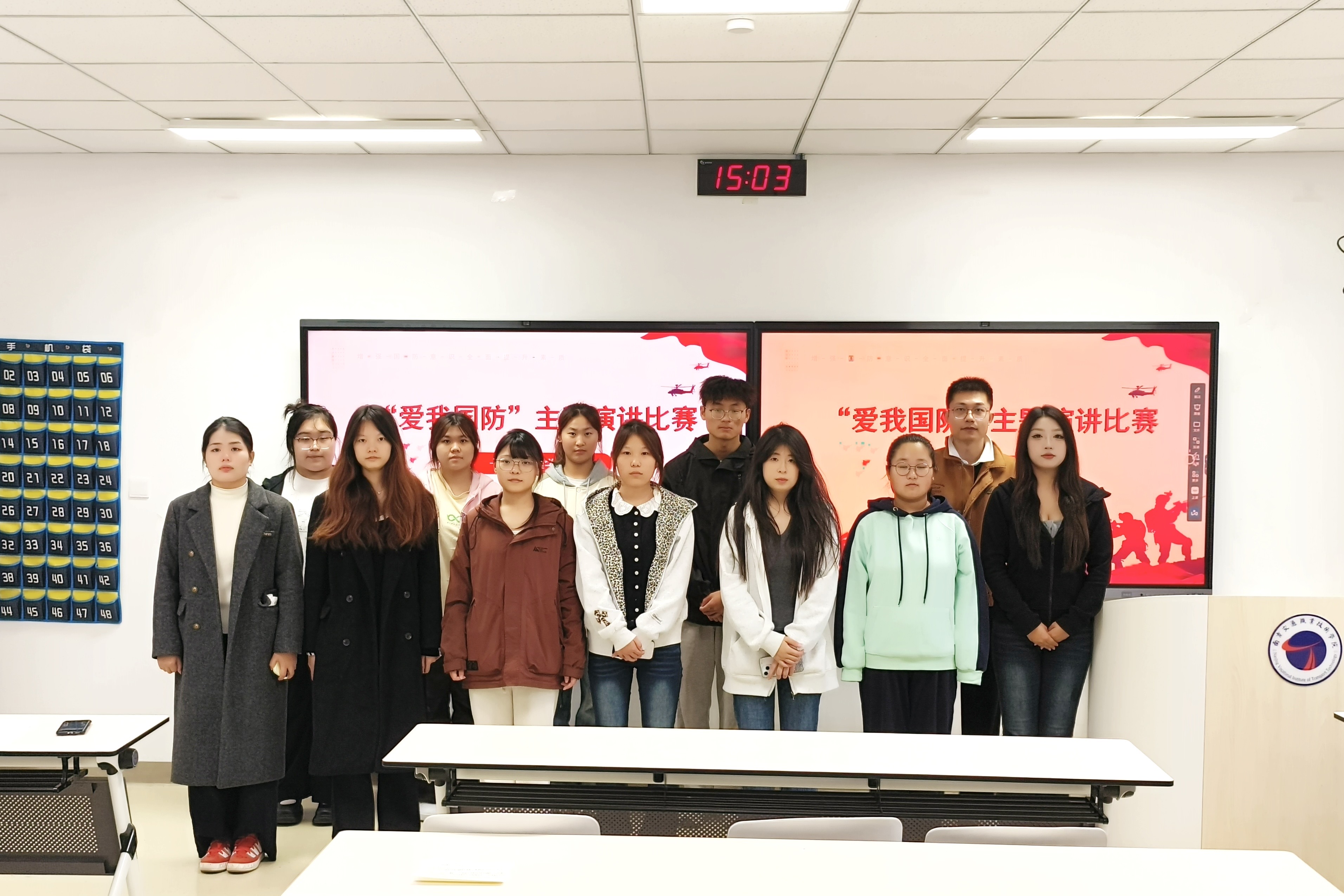 為紀(jì)念中國(guó)人民抗日戰(zhàn)爭(zhēng)暨世界反法西斯戰(zhàn)爭(zhēng)勝利80周年,引導(dǎo)我院學(xué)生銘記歷史、緬懷先烈、共筑國(guó)防意識(shí),運(yùn)輸管理學(xué)院于10月20日舉辦“愛我國(guó)防”大學(xué)生主題演講比賽,輔導(dǎo)員楊濤老師、文體部部長(zhǎng)等3人擔(dān)任本次比賽評(píng)委,二十位參賽選手參加此次比賽。