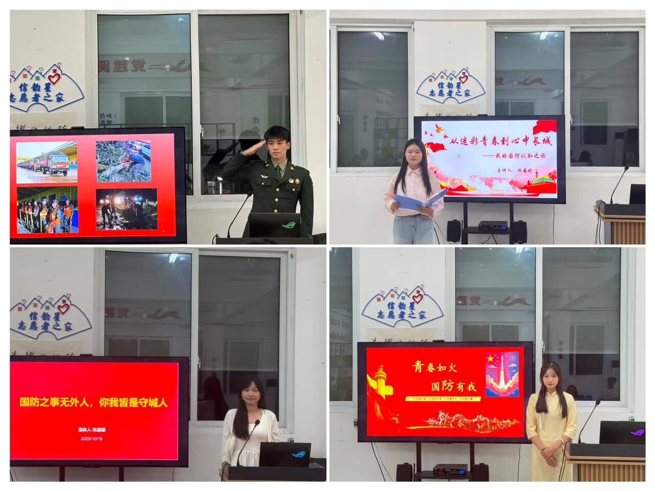 學(xué)院舉辦“愛我國防”大學(xué)生主題演講比賽,青年學(xué)子結(jié)合時(shí)代背景與專業(yè)特點(diǎn),圍繞“科技強(qiáng)軍”“信息筑防”等主題展開演講,發(fā)出‘用代碼守護(hù)疆土,用技術(shù)賦能強(qiáng)軍’的青春宣言,充分展現(xiàn)電信學(xué)子以科技報(bào)國的責(zé)任擔(dān)當(dāng)與家國情懷?;顒?dòng)讓青年學(xué)生在思想碰撞中感悟使命、在語言表達(dá)中堅(jiān)定信念,進(jìn)一步增強(qiáng)了國防意識(shí)和歷史責(zé)任感。