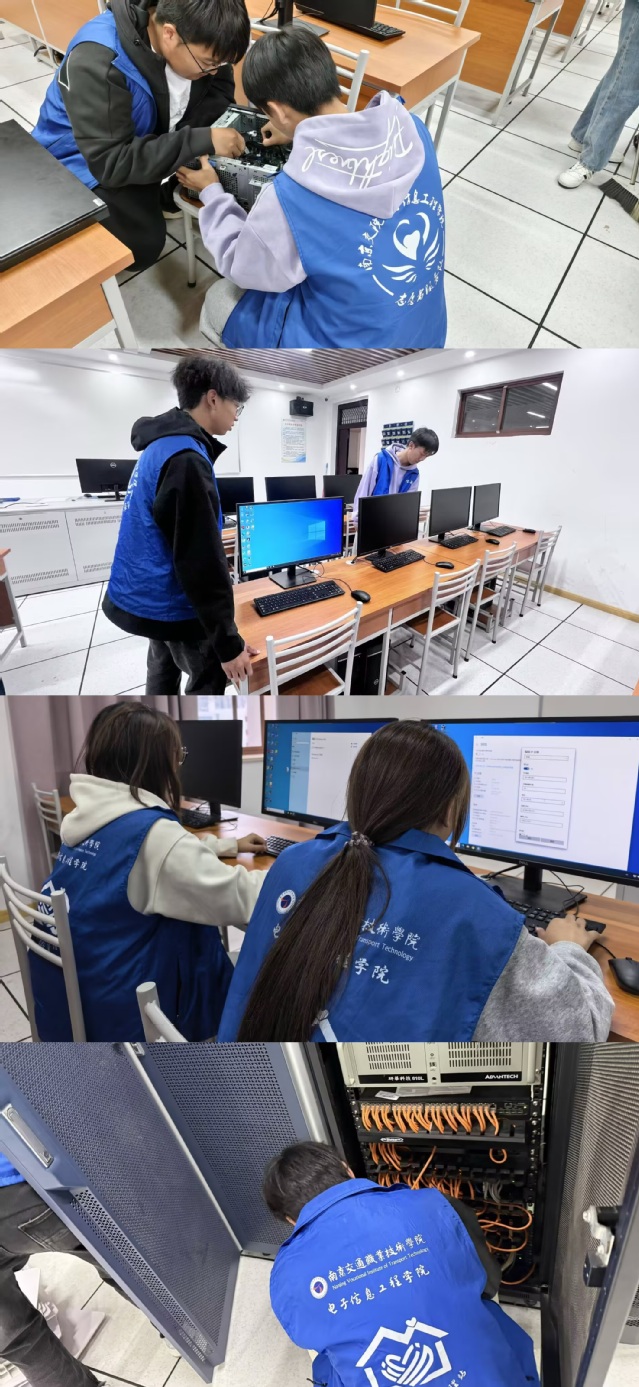在計(jì)算機(jī)教研室李揚(yáng)老師和輔導(dǎo)員孫群越老師的指導(dǎo)下,學(xué)生們分組協(xié)作,有序開展各項(xiàng)工作。他們細(xì)致擦拭電腦屏幕、鍵盤和主機(jī),用專業(yè)工具清潔設(shè)備積塵;用專業(yè)知識對機(jī)房內(nèi)錯(cuò)綜復(fù)雜的電源線和網(wǎng)絡(luò)線纜進(jìn)行重新規(guī)劃、捆扎整理,既改善了機(jī)房環(huán)境,也排除了安全隱患。同學(xué)們還參與了設(shè)備巡檢環(huán)節(jié),學(xué)習(xí)判斷設(shè)備運(yùn)行狀態(tài),確保機(jī)房設(shè)施正常運(yùn)行。