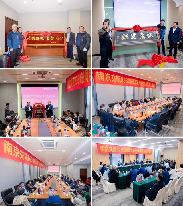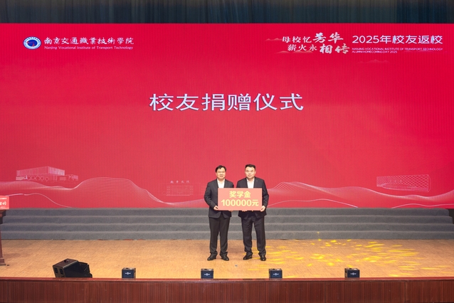 學院畢業(yè)40周年校友代表,原南京公安交管局二級高級警長8210班郭京濤,原江蘇省蘇豪控股集團黨委副書記8220班姚蓓,原省交通工程建設(shè)局工會主席8230班陳勝利,原亭湖區(qū)政協(xié)黨組成員8331班王志道;畢業(yè)30周年校友代表,智能華交通科技(江蘇)有限公司董事長9121班馮利華;畢業(yè)20周年校友代表,江蘇博宇鑫信息科技股份有限公司董事長02406班劉新成;畢業(yè)10周年校友代表,南京道盛裝飾設(shè)計有限公司董事長126033班盧開祥分別代表校友發(fā)言。江蘇博宇鑫信息科技股份有限公司董事長劉新成向母校捐贈獎學金10萬元。