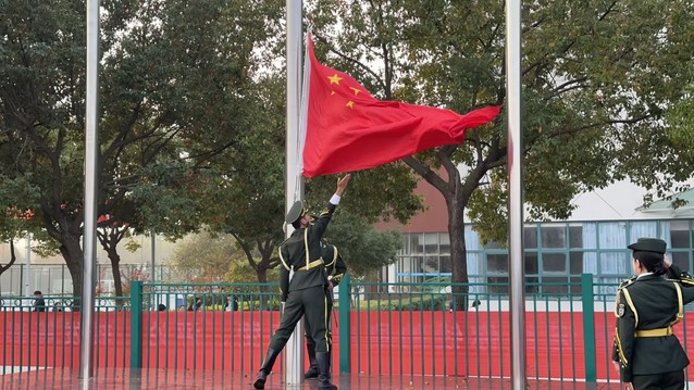 初冬暖陽傾灑于操場,學(xué)生們陸續(xù)抵達(dá)指定地點(diǎn)并列隊(duì)完畢。七時(shí)整,升旗儀式正式啟幕。在學(xué)生們的注目下,國旗儀仗隊(duì)隊(duì)員昂首挺胸,邁著整齊、有力的正步,護(hù)送五星紅旗走向旗桿。伴隨著《義勇軍進(jìn)行曲》激昂雄壯的旋律,學(xué)生們肅立凝望,五星紅旗在熠熠晨光中冉冉升起、迎風(fēng)飄揚(yáng)。歌聲結(jié)束,本次愛國主題升旗儀式圓滿完成,學(xué)生們懷著激動(dòng)的心情有序離場。