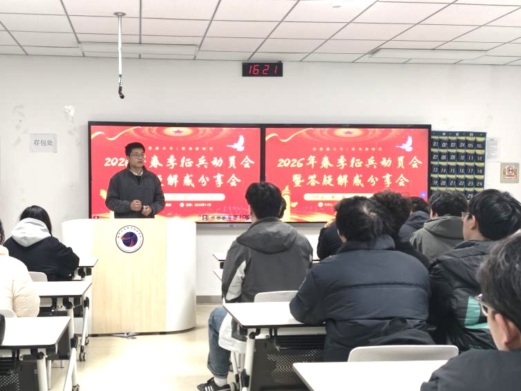 11月18日下午,運輸管理學(xué)院于齊賢樓413召開2026年春季征兵動員暨答疑解惑分享會,征兵工作輔導(dǎo)員楊濤、40名運管學(xué)子參加此次會議,會議由楊濤老師主持。