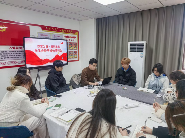 11月17日,學(xué)院在D棟一站式學(xué)生社區(qū)召開(kāi)“以藝為翼?履職擔(dān)當(dāng)”學(xué)生會(huì)骨干暨宿舍長(zhǎng)成長(zhǎng)培訓(xùn)會(huì)。會(huì)議由功能型黨支部組織統(tǒng)戰(zhàn)委員王晉主持。