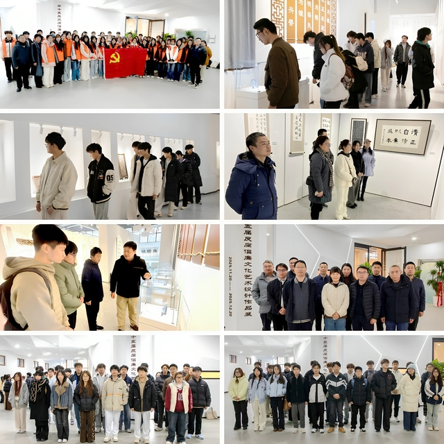 學院領導高度重視、親臨指導。展覽期間,黨委書記張毅,院長王道峰,黨委副書記文愛民,紀委書記張徐剛,副院長劉雪芬、姜軍,正處級干部白炳東,黨委委員康建軍、袁茜蒞臨觀展,與師生親切交流,對作品的精巧構思與藝術水準給予充分肯定。