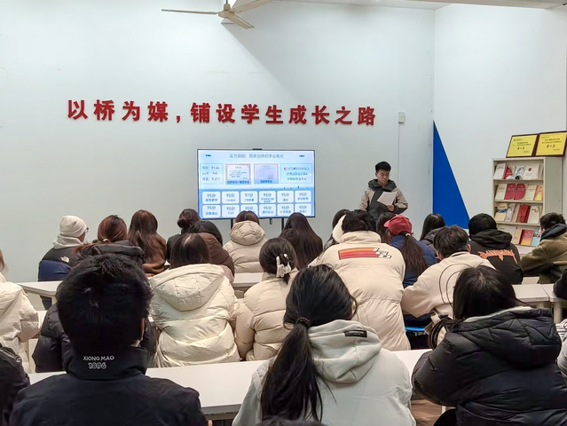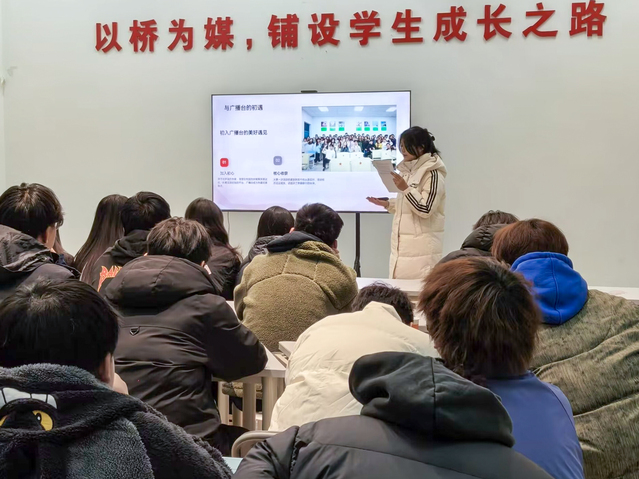 三位分享者從不同維度拆解成長(zhǎng)密碼,干貨十足且各有側(cè)重。道橋2401班楊金文同學(xué)以“三句心里話”直擊核心,強(qiáng)調(diào)“學(xué)業(yè)是大學(xué)最穩(wěn)的底氣”。他憑借優(yōu)異的學(xué)業(yè)成績(jī)與多項(xiàng)獎(jiǎng)學(xué)金榮譽(yù),印證了扎實(shí)學(xué)識(shí)的價(jià)值,鼓勵(lì)學(xué)弟學(xué)妹們將求學(xué)路上的挑戰(zhàn)轉(zhuǎn)化為成長(zhǎng)的“墊腳石”。校青年之聲廣播臺(tái)副臺(tái)長(zhǎng)王楠同學(xué)分享了“以聲為媒”的逐夢(mèng)之旅:從初入廣播臺(tái)時(shí)的青澀和忐忑,到在各類校園活動(dòng)中從容發(fā)聲,她在聲音傳遞中讀懂了責(zé)任擔(dān)當(dāng),也深刻體會(huì)到團(tuán)隊(duì)支撐讓追夢(mèng)之路更有溫度。孫旭同學(xué)則圍繞競(jìng)賽獲獎(jiǎng)、學(xué)業(yè)提升、實(shí)習(xí)實(shí)踐三大板塊展開,細(xì)致拆解備賽邏輯,強(qiáng)調(diào)學(xué)習(xí)需兼顧規(guī)劃與拓展,同時(shí)結(jié)合自身實(shí)習(xí)經(jīng)歷,提醒同學(xué)們重視理論與實(shí)操的結(jié)合,在實(shí)踐中明晰職業(yè)發(fā)展方向。