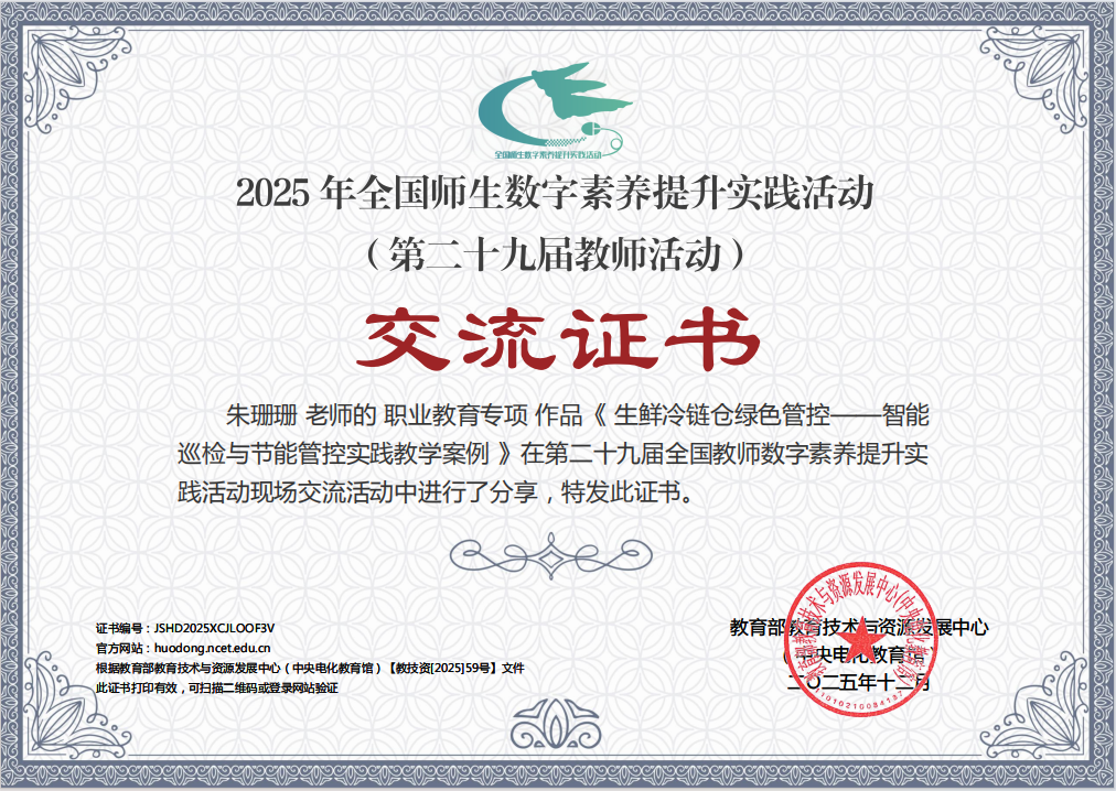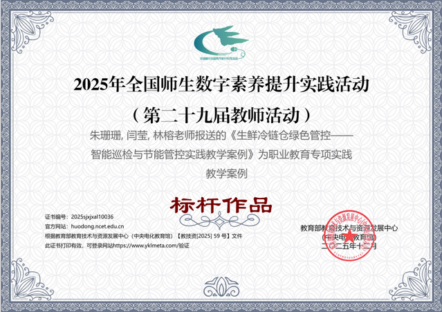 近日,由教育部教育技術(shù)與資源發(fā)展中心(中央電化教育館)主辦的2025年全國師生數(shù)字素養(yǎng)提升實踐活動(第二十九屆教師活動)現(xiàn)場交流活動在福建泉州圓滿舉行。運輸管理學院朱珊珊、閆瑩、林榕老師團隊報送的《生鮮冷鏈倉綠色管控——智能巡檢與節(jié)能管控實踐教學案例》獲評職業(yè)教育專項實踐性教學案例“標桿作品”,并參加現(xiàn)場交流展示。