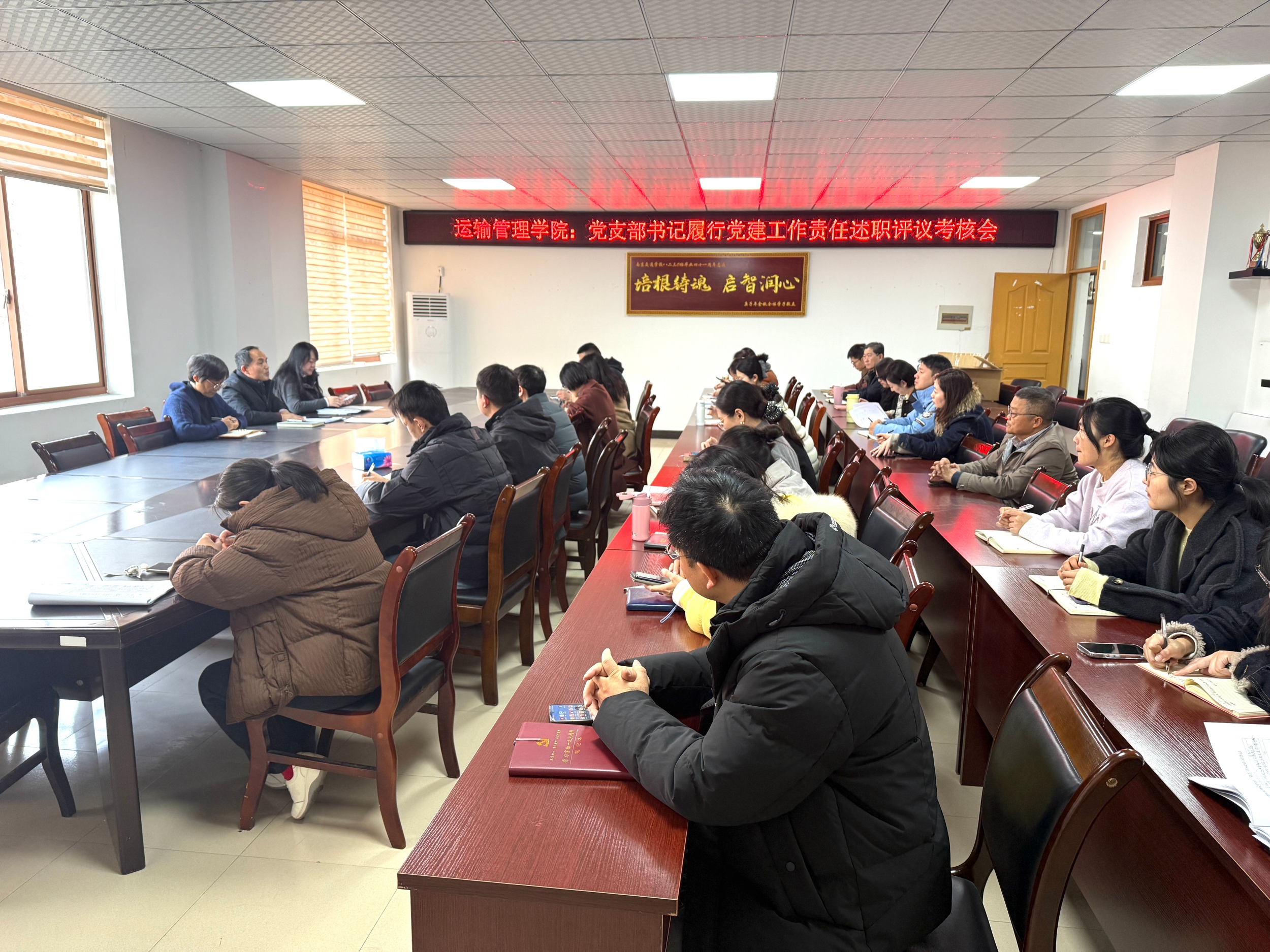 1月14日,運(yùn)輸管理學(xué)院黨總支召開黨支部書記履行黨建工作責(zé)任述職評(píng)議考核會(huì)。黨總支書記史立峰主持會(huì)議,學(xué)院領(lǐng)導(dǎo)班子成員、各黨支部書記及全體黨員參加。