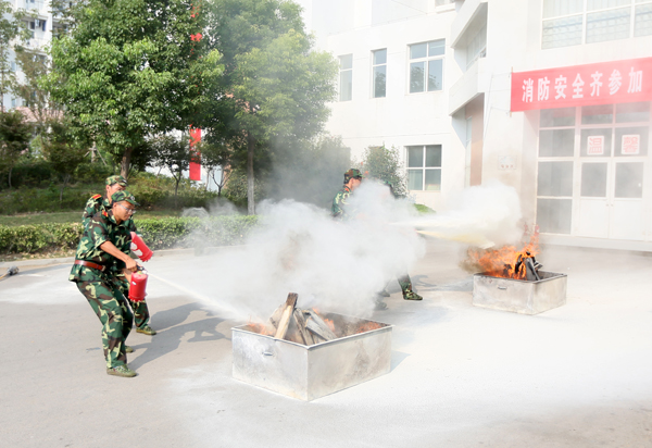模擬火災(zāi)現(xiàn)場,學(xué)生在老師指揮下,手拿毛巾捂住口鼻按預(yù)定疏散路線有序進(jìn)行疏散;醫(yī)療組趕赴現(xiàn)場實(shí)施傷員救治;心理疏導(dǎo)小組對現(xiàn)場學(xué)生進(jìn)行安撫;消防車在“校園110”車輛引導(dǎo)下迅速展開行動;“被困”學(xué)生在消防員指導(dǎo)下從3樓陽臺跳到消防救生氣墊上安全獲救。2013級40名新生進(jìn)行了初起火災(zāi)撲救演練。演練節(jié)奏緊湊,秩序井然。