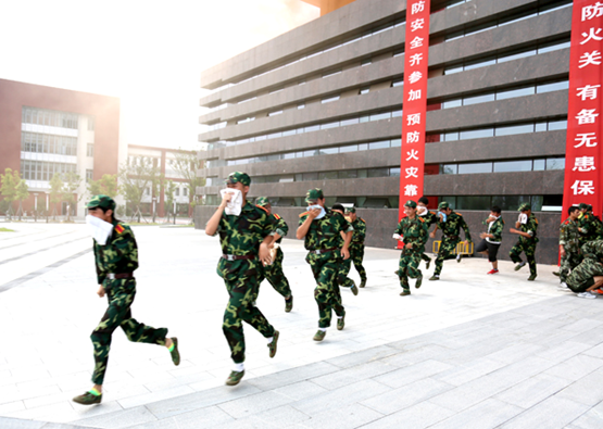 15:30,消防演練正式開(kāi)始。模擬火災(zāi)現(xiàn)場(chǎng),圖文信息樓內(nèi)學(xué)生在現(xiàn)場(chǎng)工作人員指揮下,手拿毛巾捂住口鼻按預(yù)定疏散路線有序進(jìn)行疏散;醫(yī)療組沖進(jìn)現(xiàn)場(chǎng)開(kāi)展搶救;心理疏導(dǎo)小組對(duì)現(xiàn)場(chǎng)學(xué)生進(jìn)行安撫;消防車在“校園