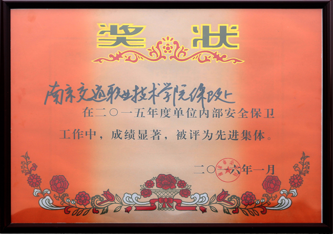 在日前召開的高新園2016年度安全生產(chǎn)、食品安全、消防安全工作會議上,學(xué)院獲“安全生產(chǎn)先進(jìn)單位”稱號。在駐園15所院校中僅有兩所獲此榮譽。同時,學(xué)院保衛(wèi)處還被南京市公安局評為“2015年度安全保衛(wèi)工作先進(jìn)集體”。
