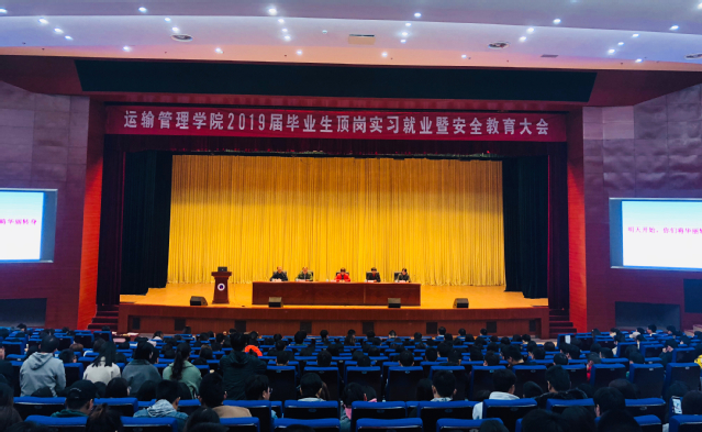 為進(jìn)一步完善畢業(yè)生頂崗實(shí)習(xí)和就業(yè)工作,引導(dǎo)學(xué)生做好頂崗實(shí)習(xí)前的心理準(zhǔn)備,2018年11月21日上午,運(yùn)輸管理學(xué)院召開(kāi)2019屆畢業(yè)生頂崗實(shí)習(xí)就業(yè)暨安全教育大會(huì)。運(yùn)輸管理學(xué)院院長(zhǎng)呂亞君、黨總支書(shū)記王艷梅、校保衛(wèi)處副處長(zhǎng)周家明、運(yùn)輸管理學(xué)院副院長(zhǎng)林榕、畢業(yè)班班主任、全體輔導(dǎo)員以及參加頂崗實(shí)習(xí)的644名學(xué)生參加。會(huì)議由院黨總支副書(shū)記葛明亮主持。