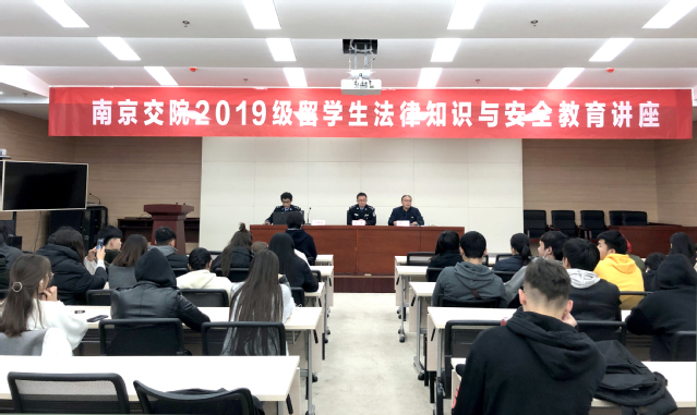 11月27日下午,學(xué)院特邀南京市江寧公安分局出入境管理大隊(duì)呂軍教導(dǎo)員、王晨星警官為我院2019級(jí)留學(xué)生舉辦“來華留學(xué)生法律知識(shí)和安全教育講座”。來自哈薩克斯坦、烏茲別克斯坦、老撾、泰國、蒙古等9個(gè)國家的留學(xué)生和國際合作與交流辦公室相關(guān)人員參加了本次活動(dòng)。專題講座由保衛(wèi)處周家明副處長主持。
