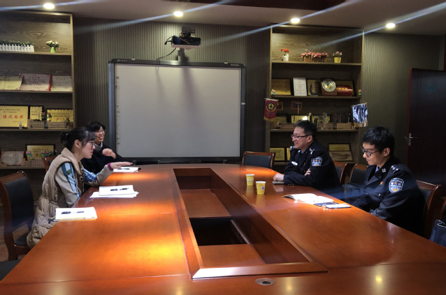 專題講座后,兩位警官實(shí)地走訪了留學(xué)生教室,查看了相關(guān)檔案,并與國際合作與交流辦公室主任袁茜進(jìn)行了座談,雙方主要就來華留學(xué)生的日常管理、跨文化交流、搭建留學(xué)生服務(wù)社區(qū)平臺(tái)等方面進(jìn)行了深度溝通。