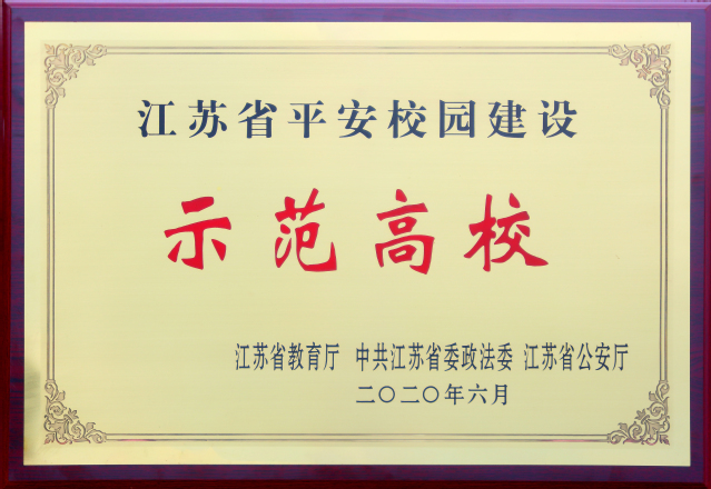 日前,學(xué)院被省教育廳、省政法委、省公安廳聯(lián)合授予“江蘇省平安校園建設(shè)示范高校”榮譽(yù)稱號(hào)。