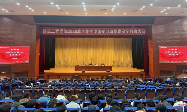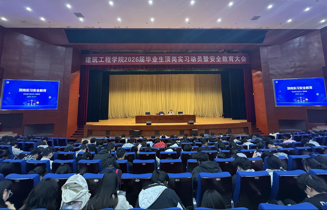 10月27日下午,建筑工程學(xué)院在圖書(shū)館報(bào)告廳召開(kāi)2026屆畢業(yè)生頂崗實(shí)習(xí)動(dòng)員暨安全教育大會(huì)。學(xué)院黨政領(lǐng)導(dǎo)班子成員、保衛(wèi)處處長(zhǎng)周家明、2026屆全體畢業(yè)生參加會(huì)議,會(huì)議由學(xué)院黨總支書(shū)記張麗君主持。