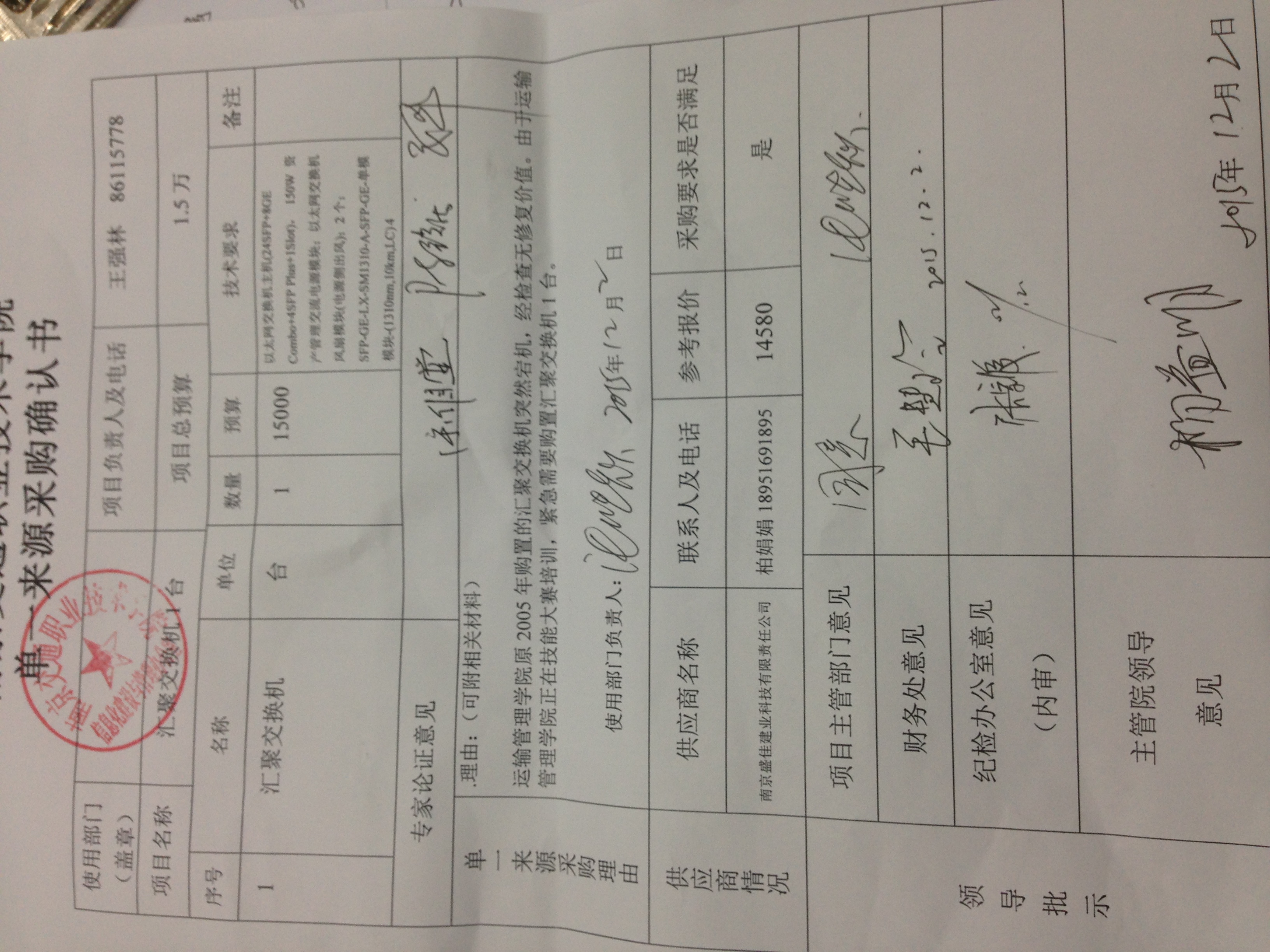 我部門受信息化建設辦公室的委托,擬對該部門委托的采購編號為JY2015125號運管學院匯聚交換機項目實施單一來源采購。