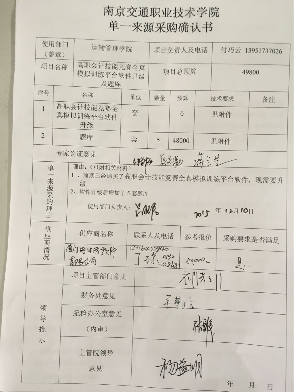 我部門受運(yùn)輸管理學(xué)院的委托,擬對(duì)該部門委托的采購(gòu)編號(hào)為JY2015128號(hào)高職會(huì)計(jì)技能競(jìng)賽全真模擬訓(xùn)練平臺(tái)升級(jí)與題庫更新項(xiàng)目實(shí)施單一來源采購(gòu)。