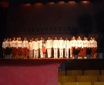 在第三屆校園文化藝術(shù)節(jié)接二連三的精彩活動展開之后,一顆清新的玉石在流光溢彩的水面上激起了陣陣漣漪。6月3日晚7:00時,在學院大禮堂內(nèi)舉行了名詩詞朗誦、演唱會。