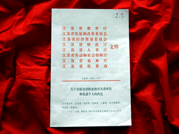 根據(jù)蘇教職[2006]4號文件,我院院長孟祥林同志近日被江蘇省教育廳、省發(fā)改委、省經(jīng)貿(mào)委、省財政廳、省人事廳、省勞動和社會保障廳、省農(nóng)林廳、省扶貧辦等八家省級機(jī)關(guān)單位聯(lián)合表彰為“江蘇省職業(yè)教育先進(jìn)個人”。